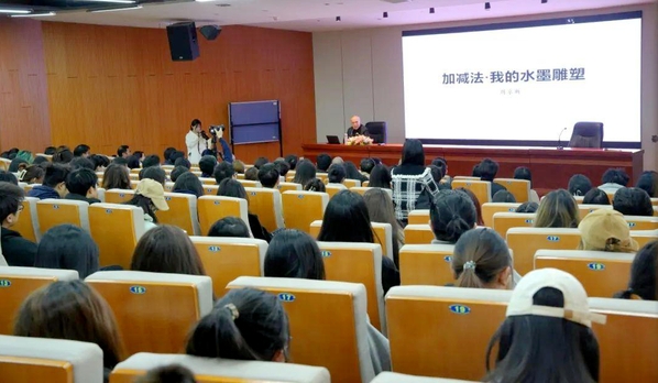 7日上午,周京新教授在美术楼一楼报告厅为美术学院师生做了一场题为《加减法·我的水墨雕塑》的学术讲座,分享自己从大学至今的绘画创作历程,通过对《水浒系列》《扬州八怪》《路人》《舞》等不同时期的系列作品展示,就如何处理线与面、笔与墨及写意与写实的关系,如何突破创作瓶颈期,提高自己笔墨语言的构建水平等进行详细讲解和认真解读,引导大家在创作中做到心、眼、手的统一,进而达到“有形处以形造笔,无形处以笔造型”的效果。