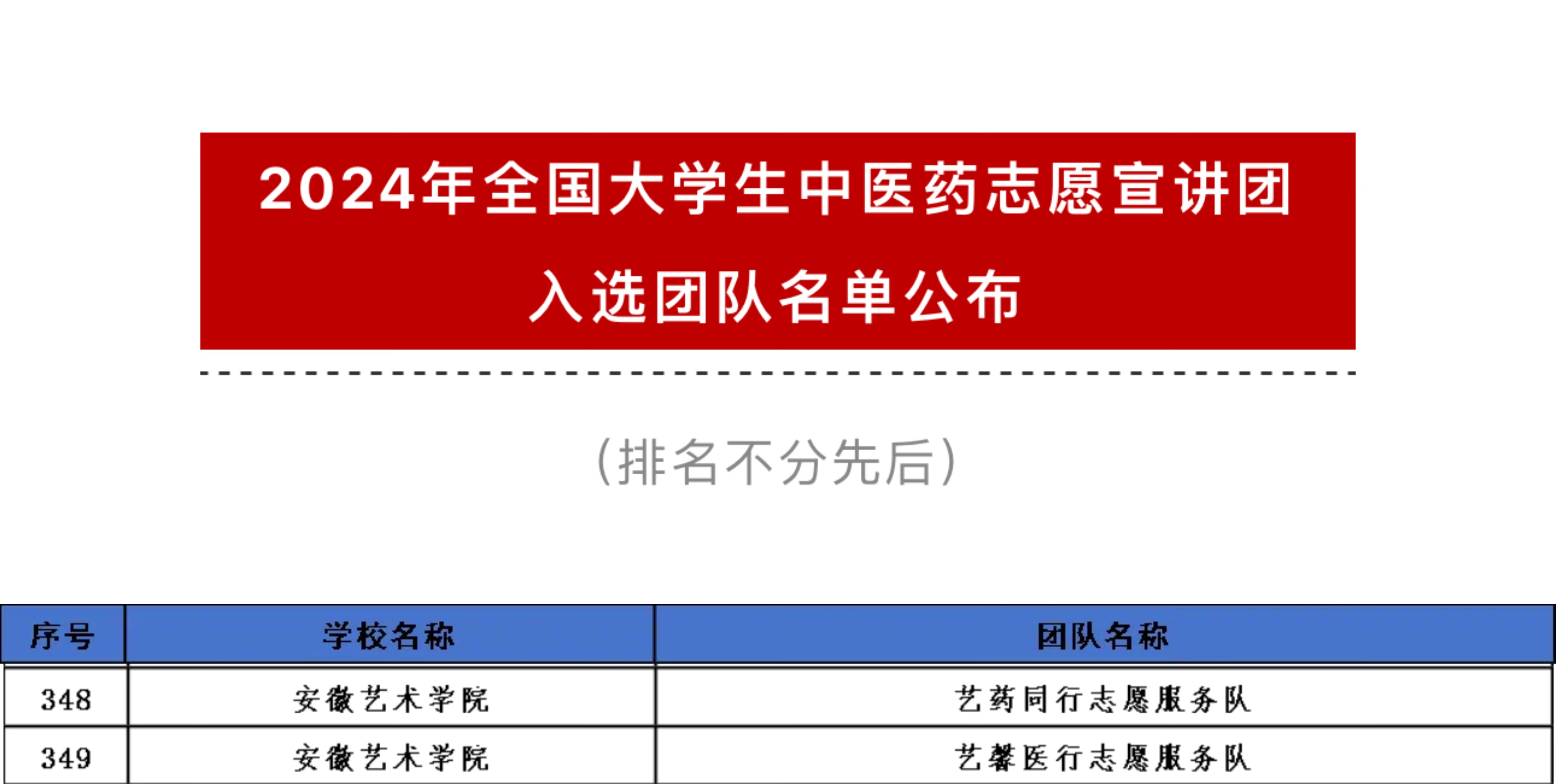 日前,由团中央青年志愿者行动指导中心、国家中医药管理局综合司、北京中医药大学、中共庆阳市委、中国青年志愿者协会秘书处主办的2024年全国大学生中医药志愿宣讲团入选团队名单公布,我校“艺药同行”“艺馨医行”两支志愿服务队成功入选。