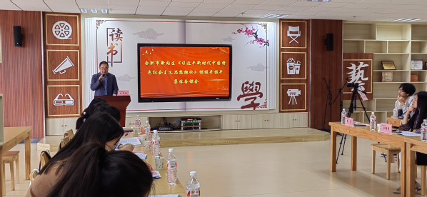 4月25日下午,合肥市新站区高校思想政治理论课教学联盟“手拉手”集体备课会在安徽广播影视职业技术学院成功举办,安徽广播影视职业技术学院党委书记陈锋参加集体备课会并在开幕式上致辞。我校马克思主义学院院长吴孔铎、习近平新时代中国特色社会主义思想概论教研室主任朱哲恒参加备课会。