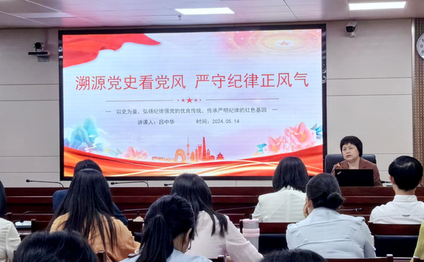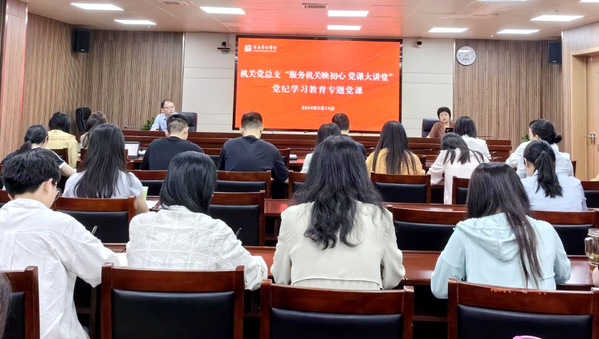 为深入推动党纪学习教育走深走实,5月14日下午,机关党总支“服务机关映初心 党课大讲堂”开讲。机关党总支书记吕中华以《溯源党史看党风 严守纪律正风气》为题,机关党总支副书记刘涛以《中国共产党纪律处分条例》解读为题,在教学综合楼717会议室讲授党纪学习教育专题党课。党总支委员,机关各党支部组织委员、宣传委员和纪检委员或担任组织、宣传和纪检工作的党员同志,机关党总支各支部的其他党员同志参加本次专题党课。