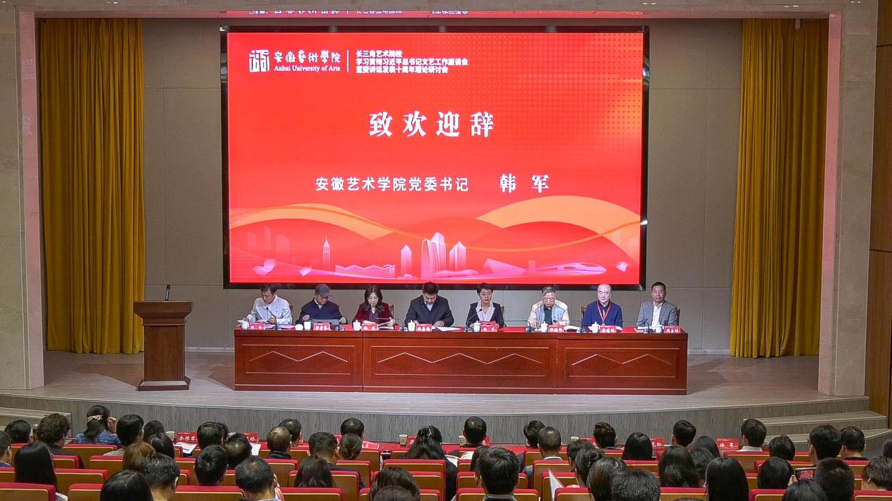 在习近平总书记文艺工作座谈会重要讲话发表10周年之际,10月12号到13号,来自北京和长三角地区近20所艺术院校的专家学者及合肥市部分中小学校教育工作者齐聚安徽艺术学院,重温习近平总书记重要讲话精神,积极推动思政与艺术深度融合发展,为新时代培育和造就“一支宏大的文艺人才队伍”开展交流研讨。安徽省委教育工委二级巡视员林兴德、安徽省文化和旅游厅二级巡视员海燕、安徽省社科联合会二级巡视员程继新、安徽艺术学院党委书记韩军、安徽艺术学院社科联主席樊嘉禄出席开幕式。安徽艺术学院党委委员、副校长陈林主持开幕式。