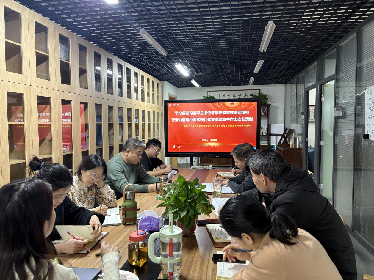 柳友荣深入阐释了党的二十届三中全会的重大意义、主要精神和丰富内涵,并从社会治理、文旅融合两个方面对习近平总书记考察安徽的重要讲话作全面回顾。他要求,在文化传承方面,要像保护六尺巷等文化瑰宝一样,加强历史文化保护,坚持创造性转化、创新性发展,打牢社会治理的文化根基。在科技创新方面,要加快实现高水平科技自立自强,为建设科技强国奉献才智。同时,结合我校实际,提出要扎根“和合文化”打造艺术精品,让艺术成为社会治理的润滑剂,围绕“艺术+科技”赋能艺术教育,让艺术成为文旅融合的助推剂。