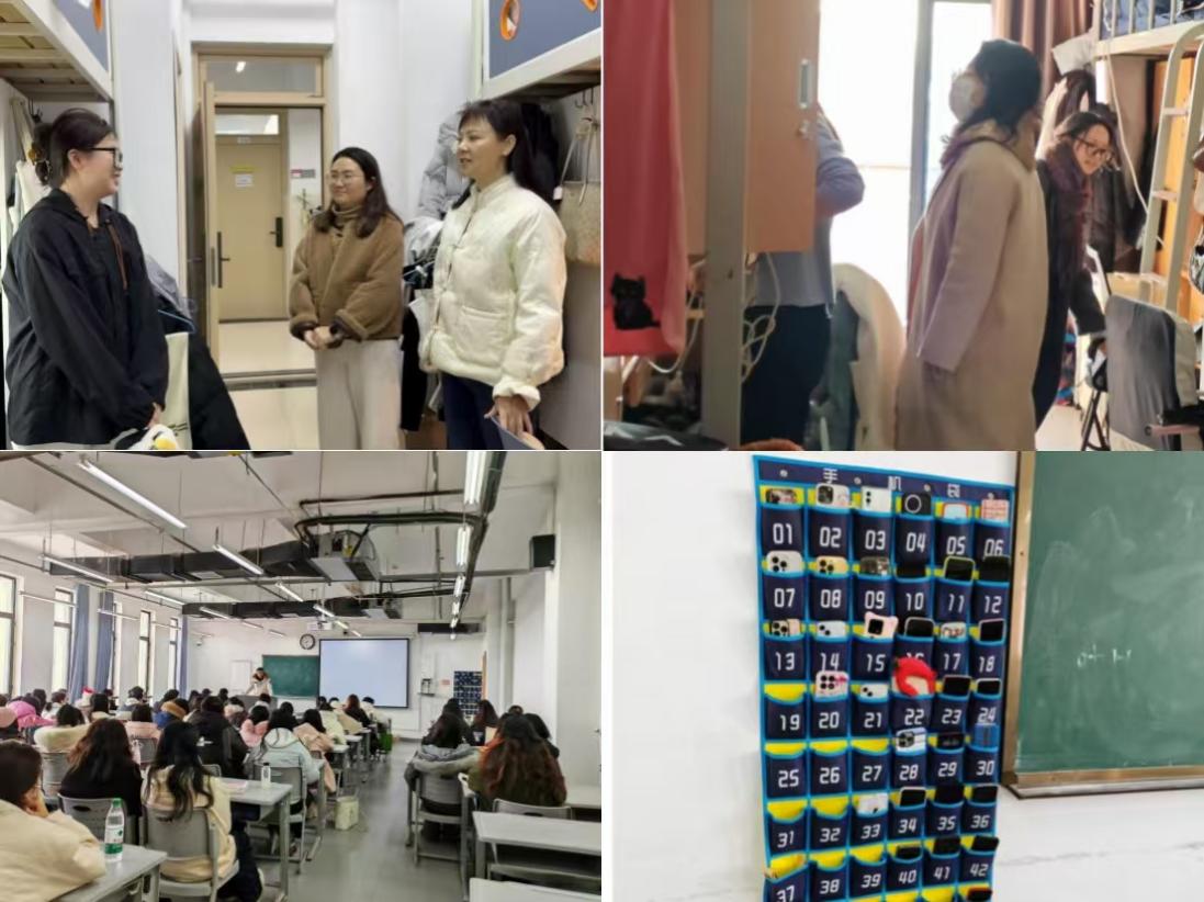 为确保学风建设工作落到实处,传媒学院高度重视,精心部署。开学第一周,传媒学院党总支书记、院长蔡正兰组织带领辅导员深入学生宿舍开展查寝工作,了解学生返校情况,检查宿舍卫生,排查安全隐患,同时督促学生尽快调整状态,以饱满的热情迎接新学期。学院严格执行查课与课上手机入袋制度,对课堂出勤及纪律情况进行监督,确保课堂秩序井然。