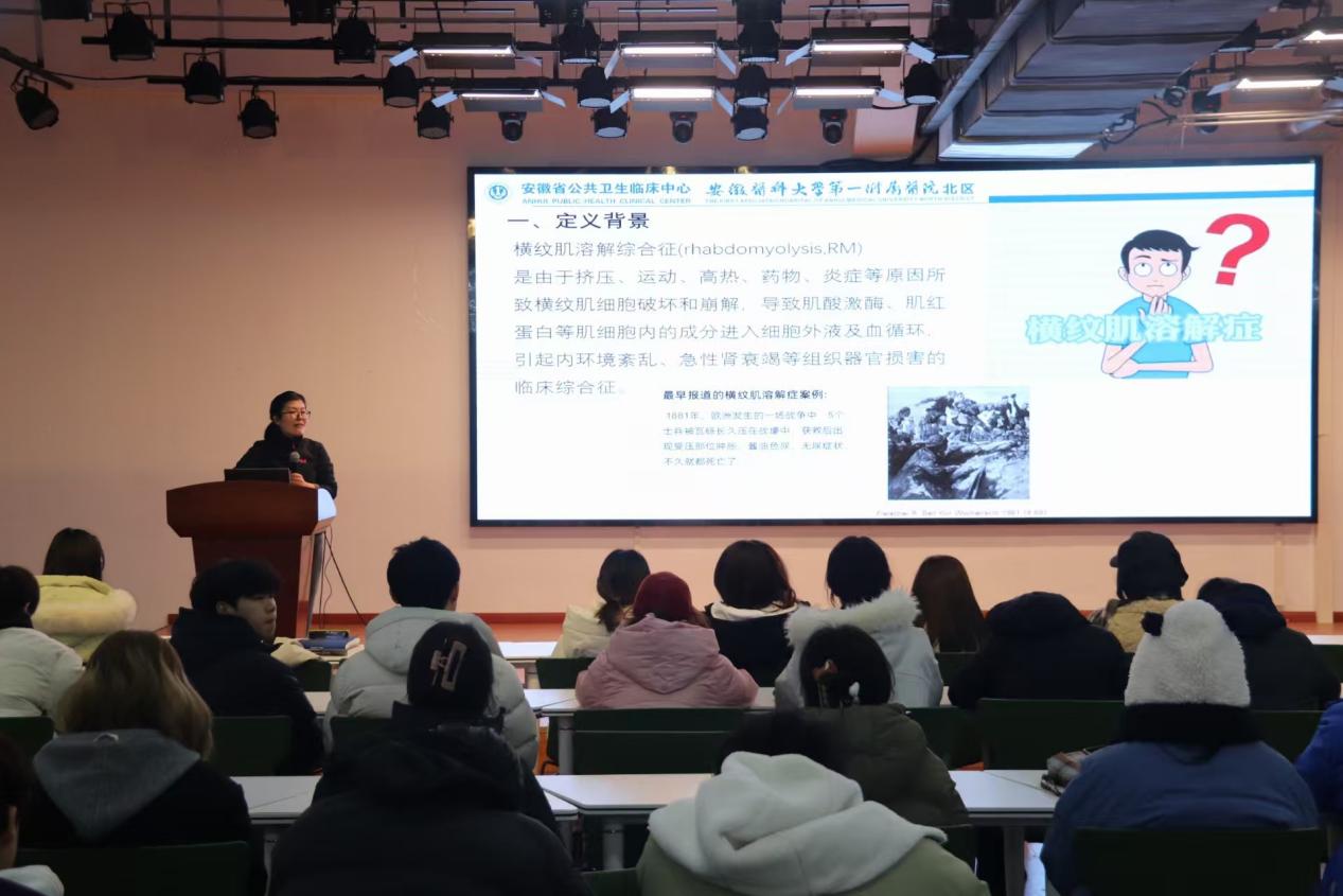近日,我校联合安医大一附院北区开展以“健身路上的‘隐形杀手’:运动性横纹肌溶解症与急性肾损伤”为主题的科学锻炼科普讲座。