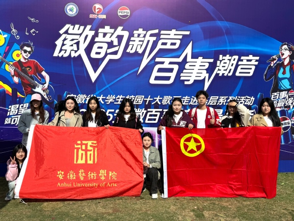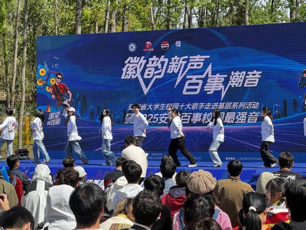 4月13日,由共青团安徽省委、安徽广播电视台、安徽省学生联合会共同主办的“徽韵新声 百事潮音”安徽省大学生校园十大歌手走进基层系列活动在合肥市大圩镇沈福村沈福乐园举行,我校学子受邀参与演出活动。
