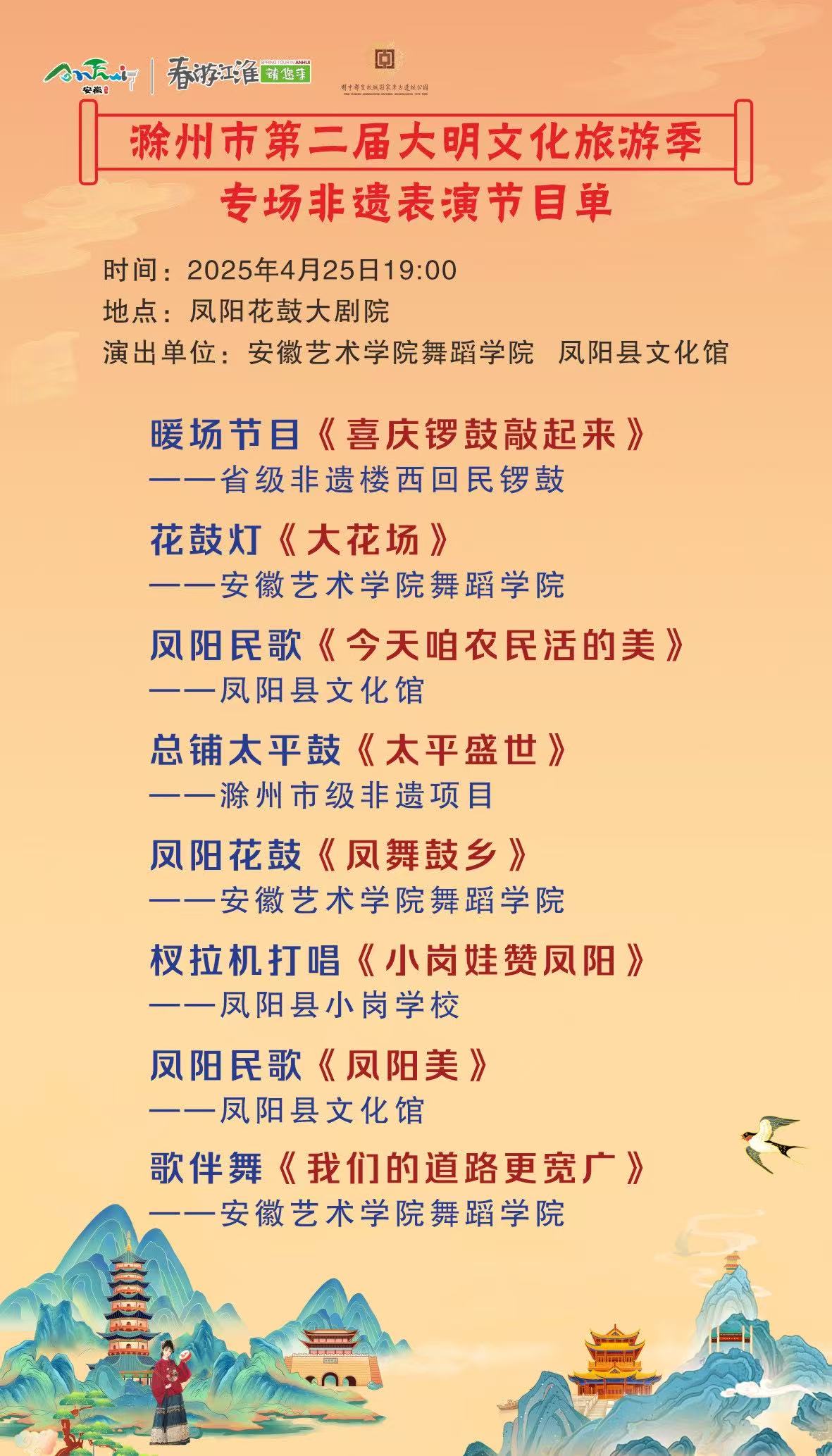 4月25日至26日,由滁州市文化和旅游局、凤阳县委宣传部主办,凤阳县文化和旅游局承办的“大明华章 礼敬山河”滁州市第二届大明文化旅游季启动仪式在凤阳县隆重举行。