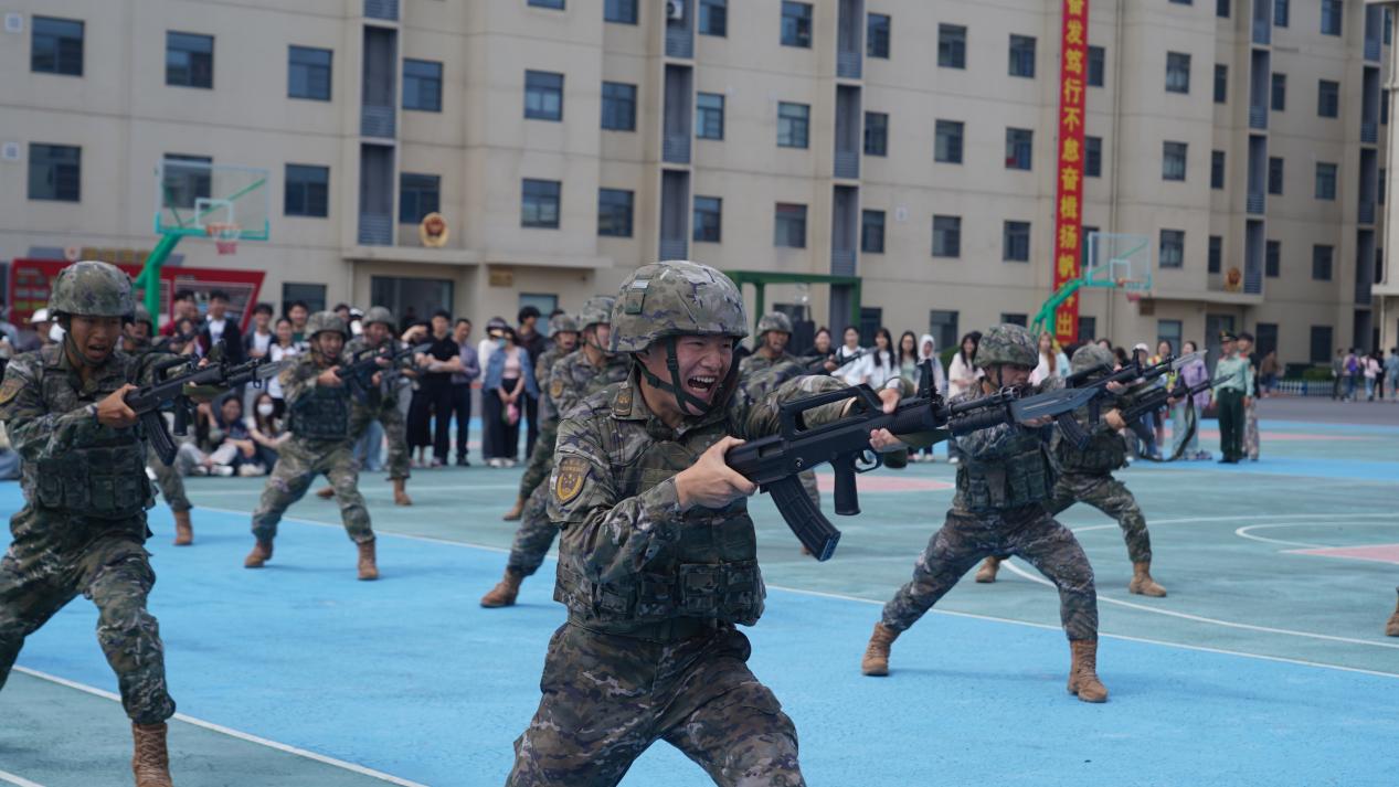随后,同学们观摩了战士们精彩的队列训练和军事技能展示。挺拔的身姿、铿锵的步伐、利落的战术动作,展现出人民子弟兵过硬的军事素质和昂扬的精神风貌,赢得了现场阵阵掌声。