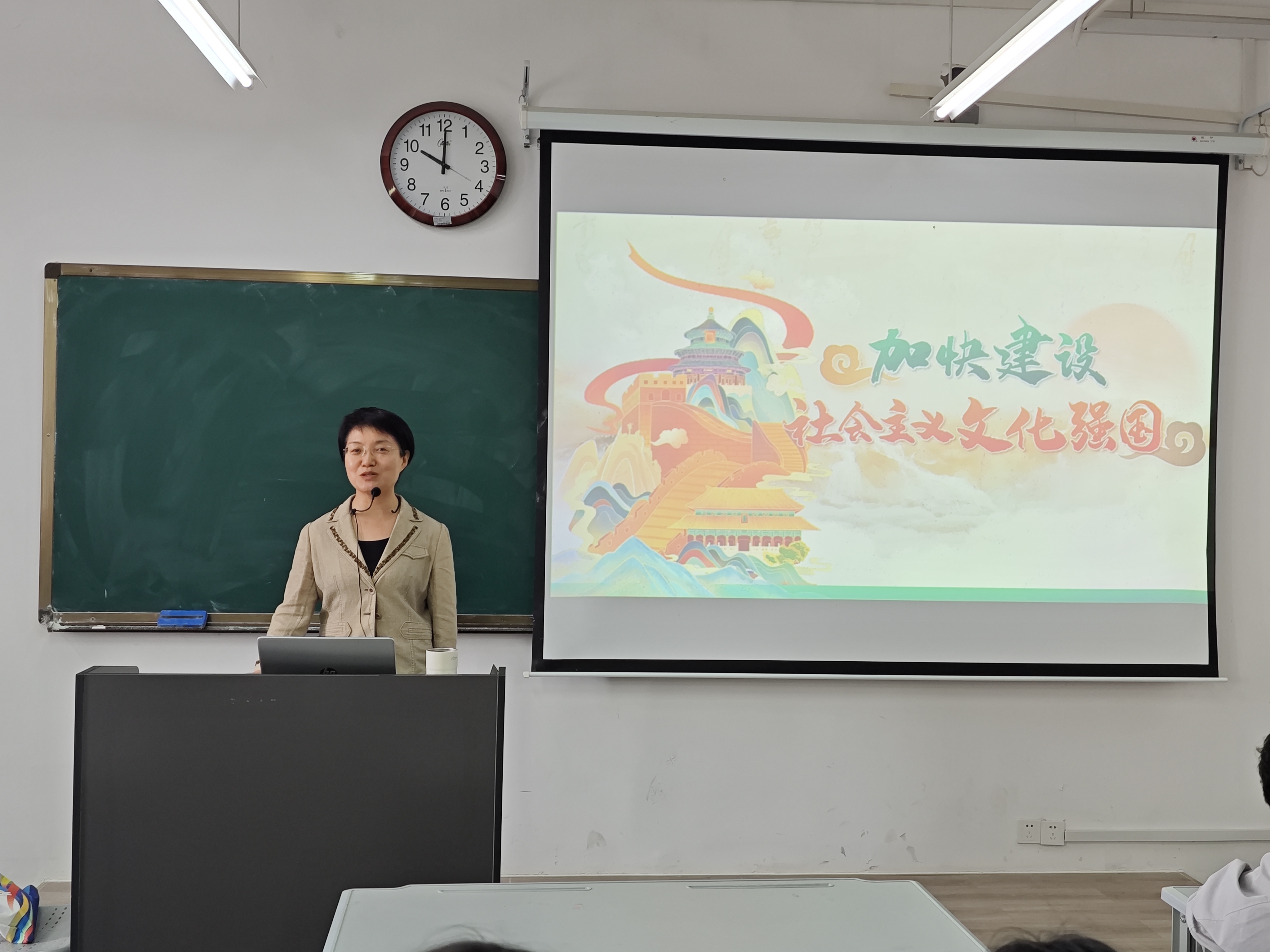 韩军以“加快建设社会主义文化强国”为题,从“强塑国魂担当历史使命”“非凡成就彰显实践伟力”“坚定自信开启时代华章”三个方面,开展深入浅出、生动风趣的课堂教学。课堂上,韩军把自身学习工作的经历和学校创新创业的历程融入教学,深刻阐明加快建设社会主义文化强国的重大意义、目标任务、战略部署和伟大成就,鼓励同学们要以昂扬的精神风貌积极投身到文化强国建设的火热实践,以守正创新的正气和锐气为建设中华民族现代文明贡献力量。