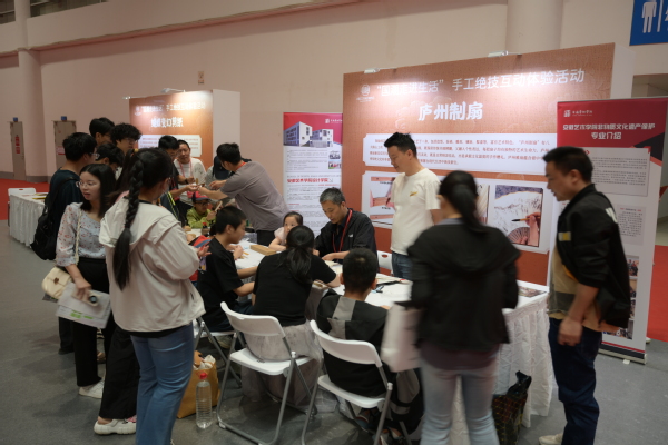 为增强公众参与感,设计学院还设立了庐州制扇“非遗互动体验”板块,观众在师生指导下体验传统工艺流程,现场反响热烈。
