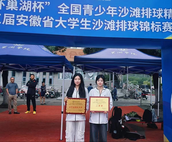 由安徽排球学院主办、巢湖学院体育学院与合肥市排球运动协会承办的“环巢湖杯”全国青少年沙滩排球精英赛暨第三届安徽省大学生沙滩排球锦标赛近日在巢湖学院举办。我校派出男、女两支队伍参赛,经过四天激烈角逐,最终斩获女子甲组二等奖、男子甲组三等奖的优异成绩,并荣获“体育道德风尚奖”,充分展现了安艺学子团结拼搏的体育精神与青春风采。