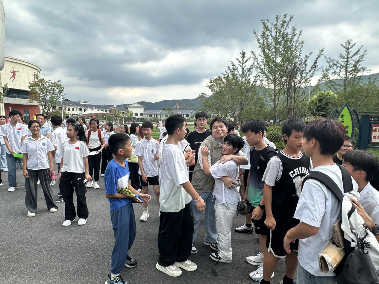 (安徽艺术学院2025年暑期第一批支教结束师生离别场景)