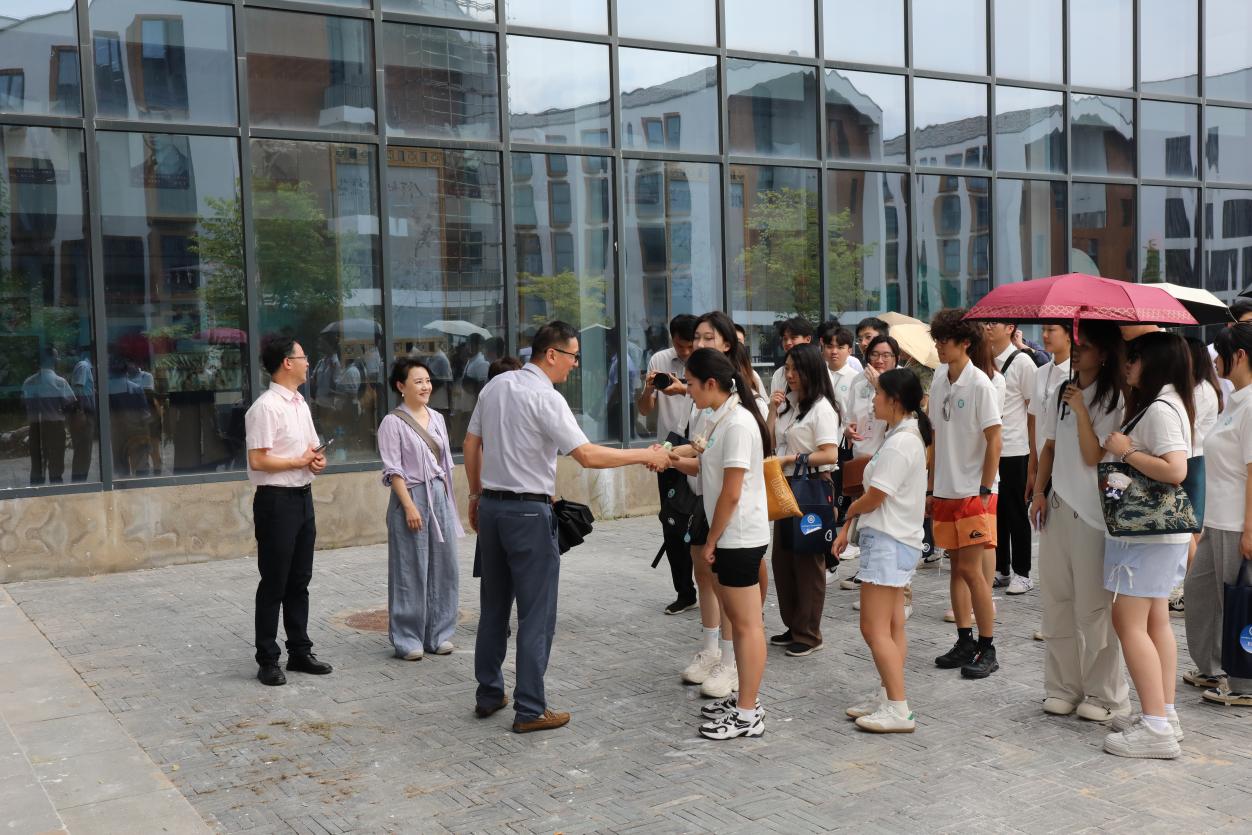 8月7日下午,参加“徽风探源——2025华裔大学生中国文化体验营”的32位华裔大学生走进我校,在专业教师的指导下学习黄梅戏经典唱段和传统武术。校党委委员、纪委书记、监察专员程宗林出席活动。