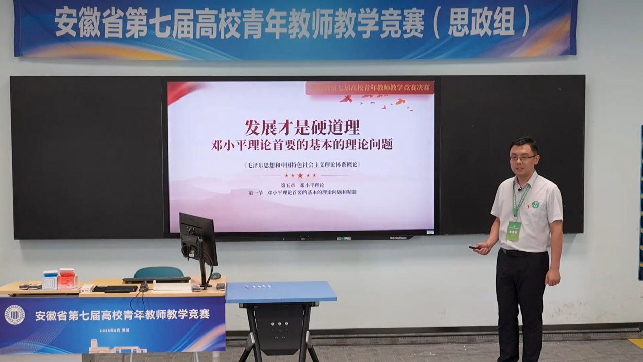 安徽省第七届高校青年教师教学竞赛于上月圆满收官。我校传媒学院教师宋秋熠荣获文科组一等奖,马克思主义学院教师陆淮光荣获思政组优秀奖,学校获评优秀组织奖。