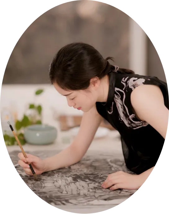 2024年5月,正值大三下学期的肖梦楠在罗守俊老师的《山水创作》课程上,萌生了一个特别的创作构想。她希望将母亲年轻时参与家乡安徽省阜阳市郭寨村淮河抗洪筑坝的经历融入画作,以此致敬老一辈建设者们。后在罗老师的悉心指导下,这个构想最终升华为以“引江济淮”这一国家重大水利工程为主题的创作项目。