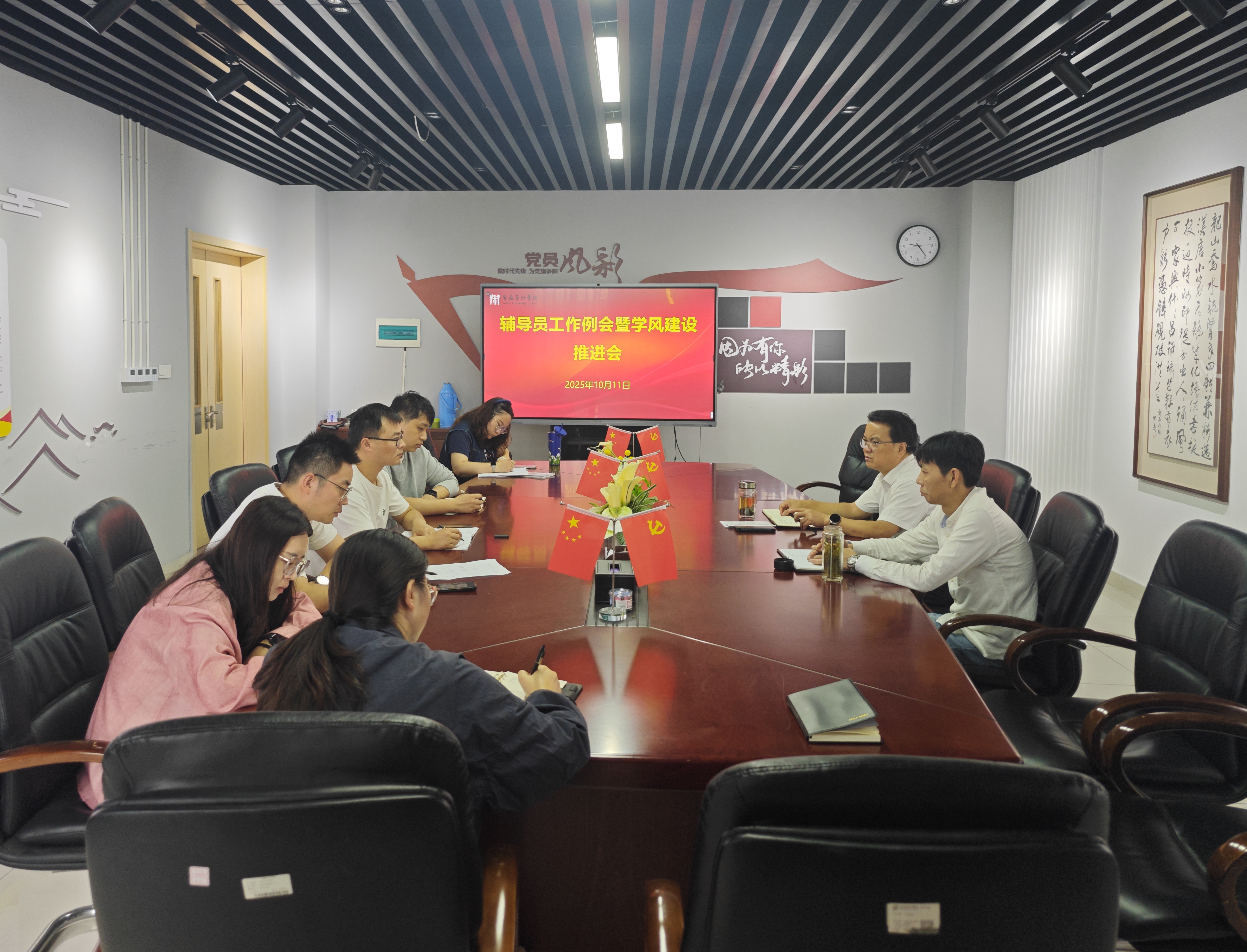 为扎实推进学风建设,凝聚育人合力,10月11日,美术学院在314会议室召开专题会议研究部署新学期学风建设。美术学院党总支书记陈明海、副院长吴晗华和全体辅导员参加会议。