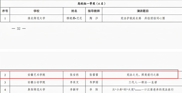 近日,由安徽省教育厅主办的安徽省第十届学生“学宪法 讲宪法”活动获奖名单公布,传媒学院学子表现出色,在演讲比赛中喜获高校组一等奖、二等奖各一项。
