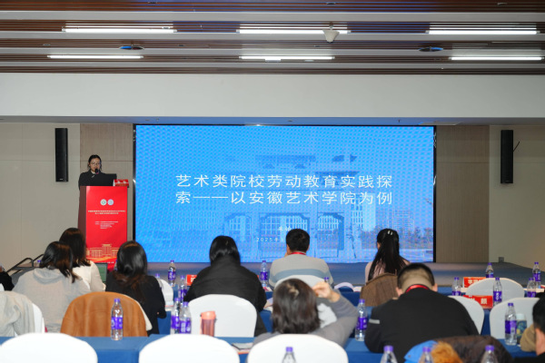 朱怡在发言中介绍,安徽艺术学院立足艺术类院校育人定位,以“立德树人、五育融合”为根本遵循,构建全域化、特色化劳动教育体系,为同类院校开展劳动教育实践提供了有益参考。她指出,学校锚定“课程筑基、文化赋能、评价导向”三大维度,将劳动教育深度融入人才培养全链条:通过必修课程与“劳动周”营造校园劳育氛围,以“亲情劳动体验”打通家校社协同链路,借“劳艺融合”实现劳动与艺术专业实践互促。同时依托科研平台牵头制定劳育标准,建立过程性与综合性评价机制,持续强化劳育成果的应用与转化。