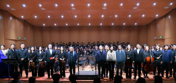 11月14日晚,安徽艺术学院交响合唱音乐会《黄河大合唱》在合肥市瑶海音乐厅成功举办。本场音乐会以纪念中国人民抗日战争暨世界反法西斯战争胜利80周年为主题,用恢弘的音乐叙事回望抗战岁月,传承红色精神,展现了新时代艺术学子的家国情怀。校党委委员、组织部部长王琍琍出席音乐会。