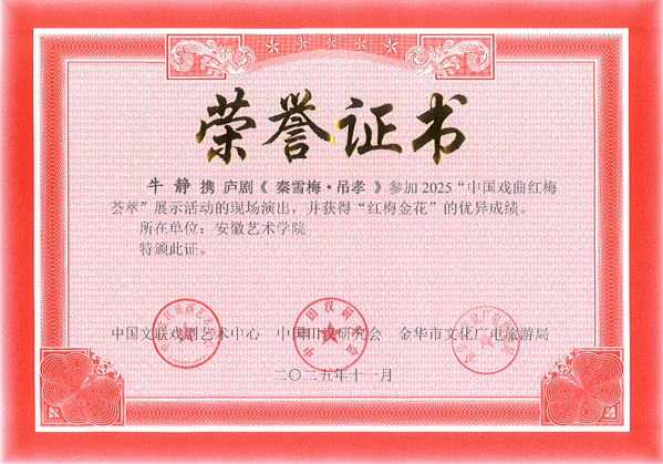 近日,2025“中国戏曲红梅荟萃”展示活动在浙江金华圆满落幕。戏剧学院教师牛静凭借深厚的艺术功底与极具感染力的舞台演绎脱颖而出,成功斩获“红梅金花”称号,为安徽艺术学院再添殊荣。