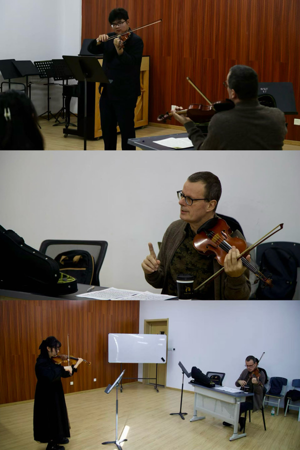 11月26日上午,安徽艺术学院“四季音乐会·乐坛来风”系列之鲁道夫·库尔曼小提琴大师班在音乐南楼215教室顺利举办。