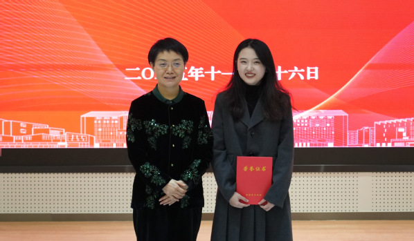 韩军为一等奖获得者孙染颁奖