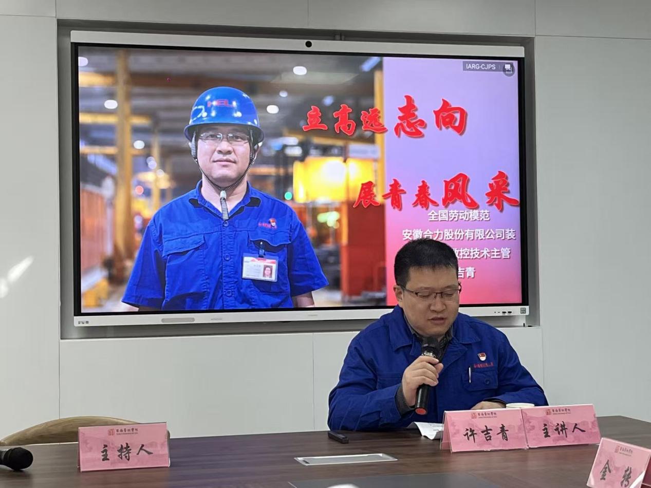 为深入学习贯彻党的二十届四中全会精神,充分发挥劳模工匠的示范引领作用,将鲜活教育素材融入学生思政教育,近日,党委学生工作部、马克思主义学院在一站式学生社区联合举办“劳模工匠进校园 匠心筑梦育新人”主题宣讲活动。全国劳动模范、享受国务院政府特殊津贴专家、安徽合力股份有限公司装备事业部设备技术主管许吉青受邀作专题分享。马克思主义学院直属党支部书记陈昀岚主持活动。