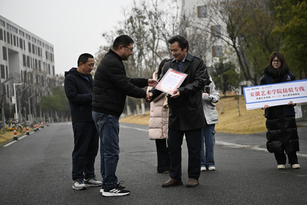 曹晓富代表安徽艺术学院向合肥公交集团递交了感谢信,并授予“安徽艺术学院接驳专线”服务标识牌,感谢公交集团为校园交通作出的积极贡献。