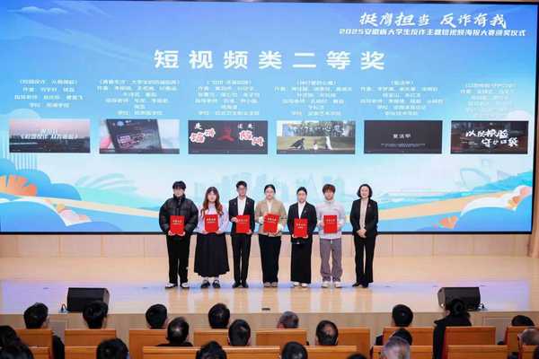 近日,由安徽省通信管理局、省公安厅、省教育厅、团省委、省学联共同主办的2025安徽省大学生反诈主题短视频海报大赛颁奖仪式在安徽医科大学举行。我校选送的短视频作品《神灯里的心魔》从153部短视频类作品中脱颖而出荣获二等奖,安徽艺术学院团委获评“优秀组织奖”,实现奖项与荣誉“双丰收”。