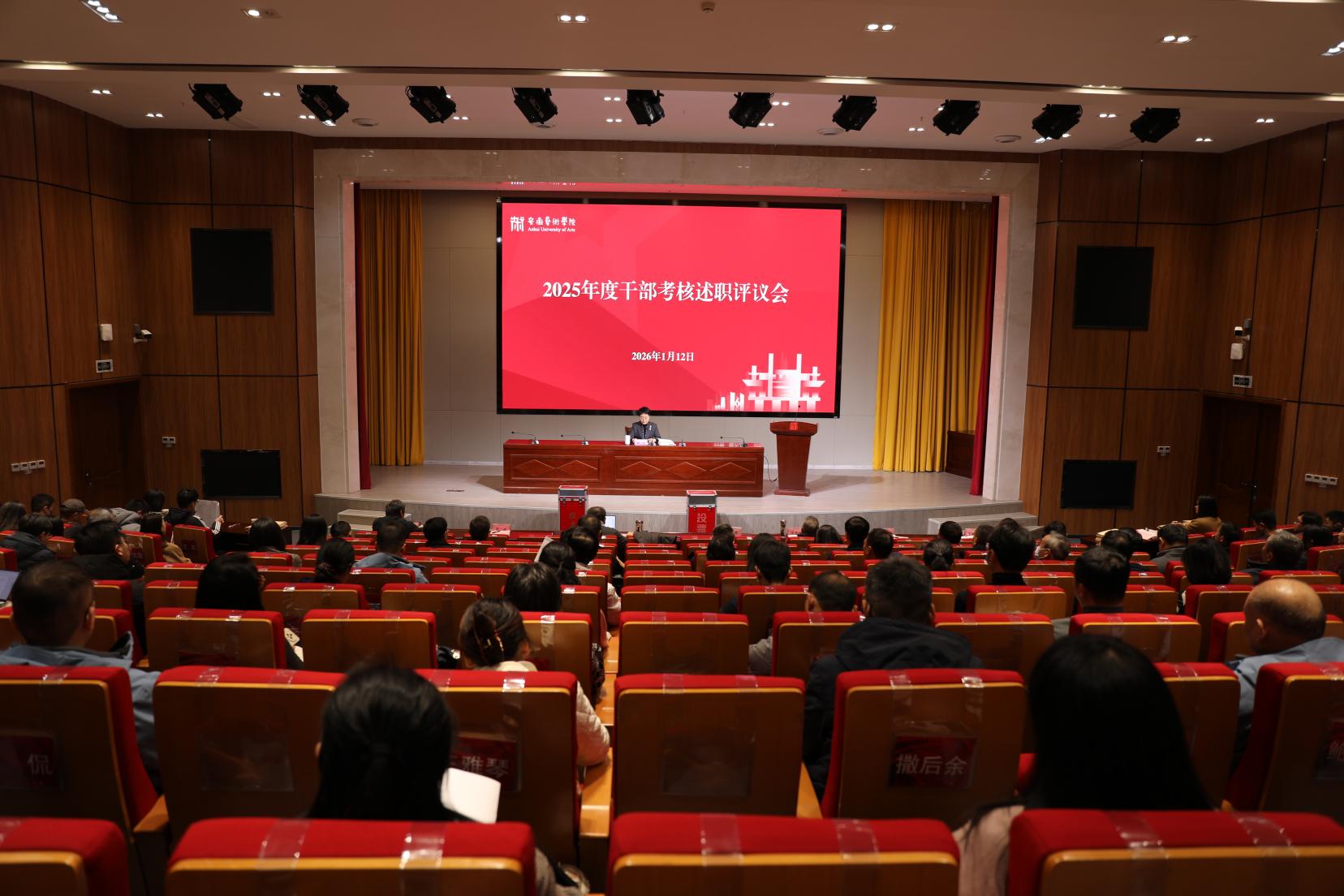 1月12日,学校在崇德楼五楼报告厅召开2025年度干部考核述职评议会议。校领导班子成员、全体处科级干部、部分教职工代表参会。党委书记韩军主持会议并作动员讲话。
