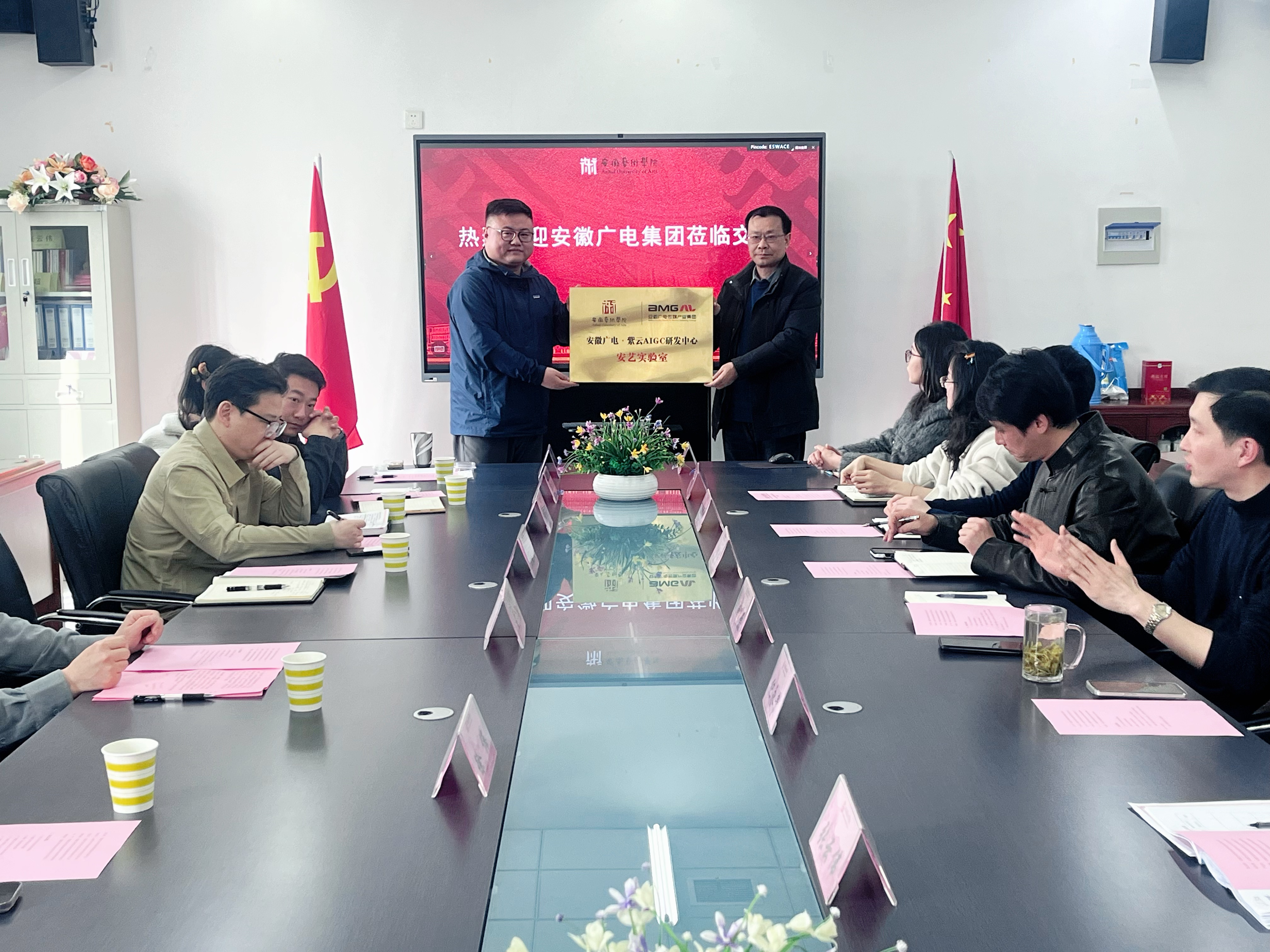 3月6日上午,安徽广电集团一行来到戏剧学院,双方在学院320 会议室举行校企合作洽谈会。安徽广电集团副总经理王胜,戏剧学院党总支书记曹磊,党总支副书记、院长纪永贵及相关负责人出席会议。