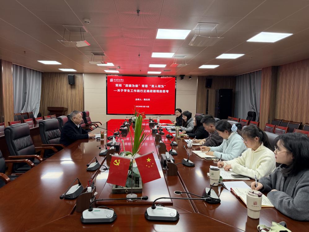 3月16日下午,校党委副书记陈文兵为学生处党支部全体党员讲授专题党课,围绕“常问‘政绩为谁’常思‘育人何为’——关于学生工作践行正确政绩观的思考”这一主题,深入交流学习贯彻习近平总书记关于树立和践行正确政绩观的重要论述的心得体会,推动学习教育走深走实、入脑入心。