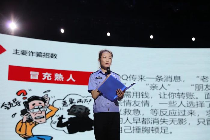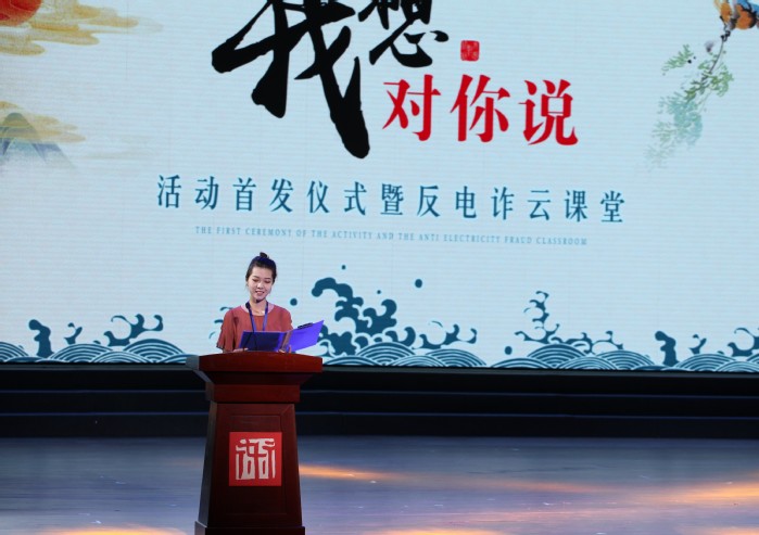 首发仪式现场,我校戏剧影视系在校生根据真实案例自编自演了《刷单风波》《骗你好商量》等原创反电诈小品,将“兼职刷单”可赚钱、“假冒熟人”寻帮助、“网购装备”误入假冒交易网站等电信网络诈骗伎俩展现得淋漓尽致。