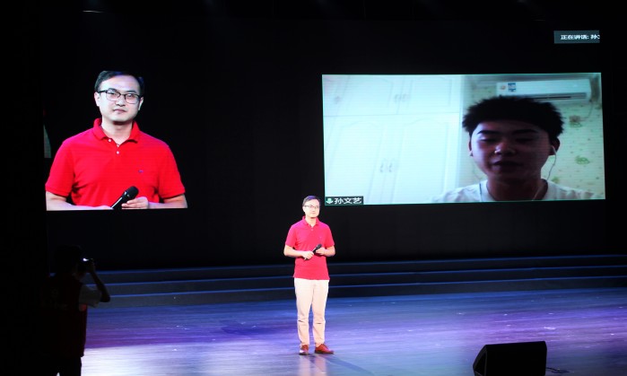 我校戏剧影视系辅导员郑军也在与2020级安艺萌新代表、戏剧影视表演专业孙苧宇同学现场视频连线的环节,送上了贴心的安全提醒,嘱咐他来校时注意保管好随身物品、警惕电信诈骗。