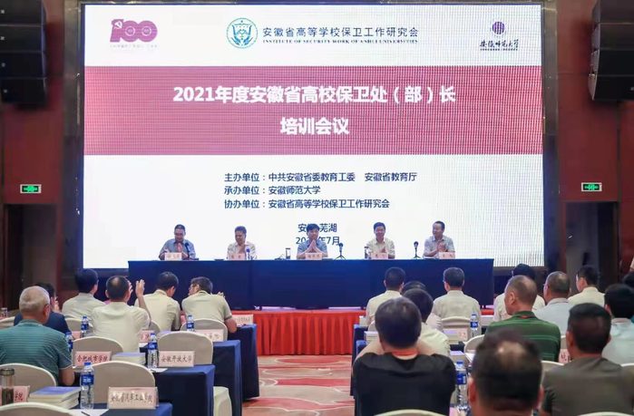 2021年安徽省高校保卫处长培训班于7月16日至20日在安徽芜湖举办。此次培训由安徽省教育工委、安徽省教育厅主办,安徽师范大学承办。我校保卫处处长陈雪峰、保卫处管理干事朱丽君参加培训。