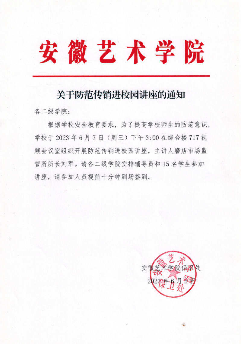 关于防范传销进校园讲座的通知
