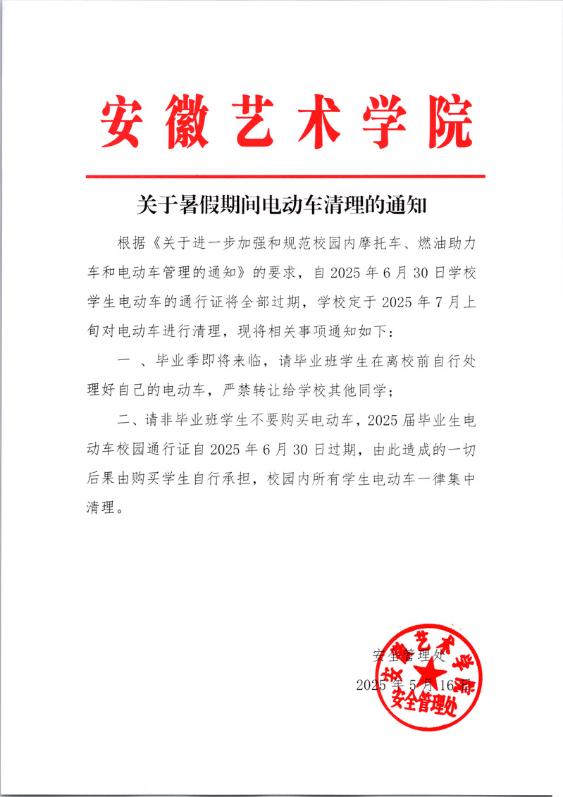 关于暑假期间电动车清理的通知