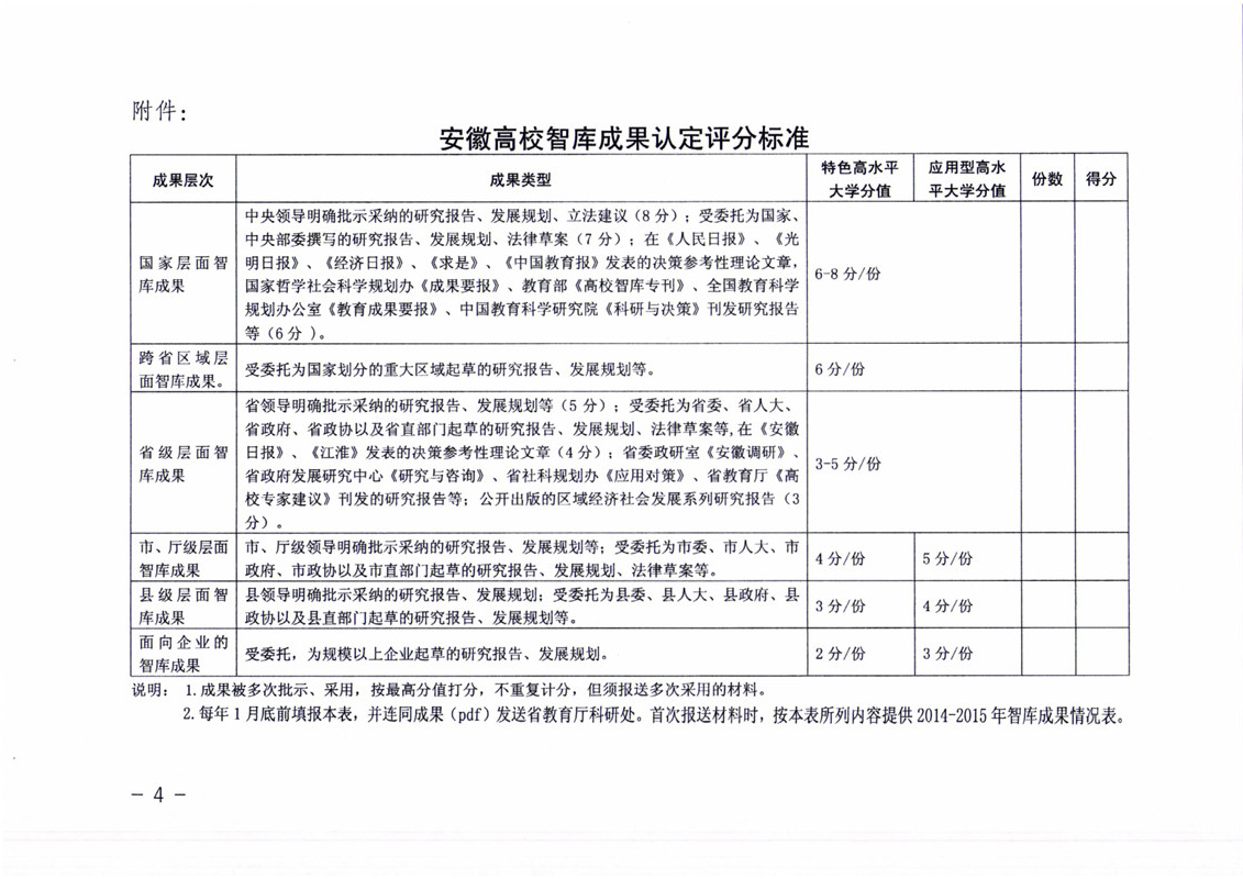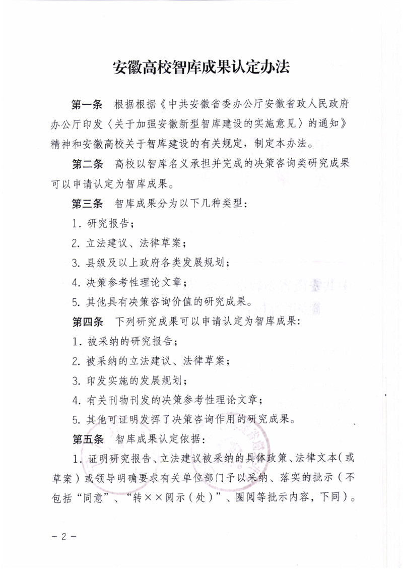 中共安徽省委教育工委 安徽省教育厅关于印发安徽高校智库成果认定办法的通知