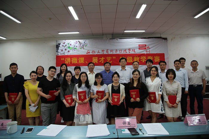 张晶副院长对“讲微课、展才艺”院级竞赛作了总结点评,他指出,此次比赛是我院继前两届青年教师基本功竞赛之后的又一次的创新与拓展,是对全院教师教学能力与教学水平的全面检验,充分体现了我院“以赛助教,教艺融合”的比赛宗旨。一个优秀的教师,要不断钻研教学,实现“寓教于研,以研助教”。他希望广大教师秉承“德艺双馨,知行合一”的校训精神,加强师德师风建设,立德树人,为成功申报设置安徽艺术学院做出自己的贡献。