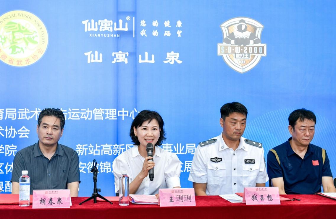 开幕式上,安徽艺术学院党委委员、组织部部长王琍琍致欢迎辞,祝愿每一位参赛选手都能发挥出自己的最佳水平,赛出风格、赛出水平、赛出友谊,期待通过本次锦标赛的举办,能够进一步激发广大师生对武术文化的兴趣和热爱,为培养更多优秀的武术人才奠定坚实的基础。