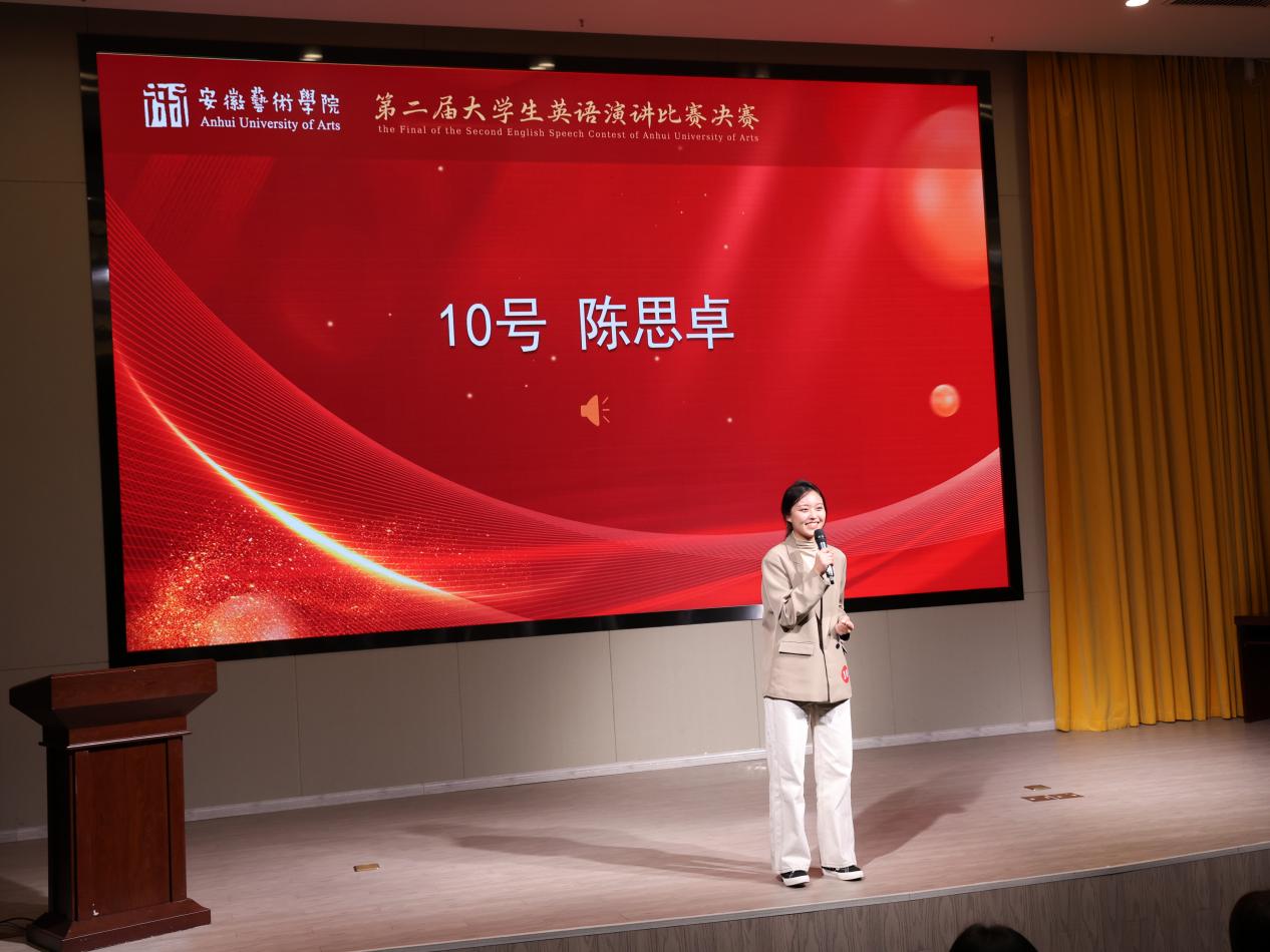 为激发我校大学生英语学习兴趣,丰富校园文化生活,推动“人文安艺”建设,给广大学生提供一个用英语展现自我的机会和舞台,12月4日下午,安徽艺术学院第二届大学生英语演讲比赛决赛在综合楼五楼学术报告厅落幕。校党委委员、副院长柳友荣教授莅临本次比赛现场,公共教学部直属党支部书记张井水、外语教师及200余名学生观摩了比赛。