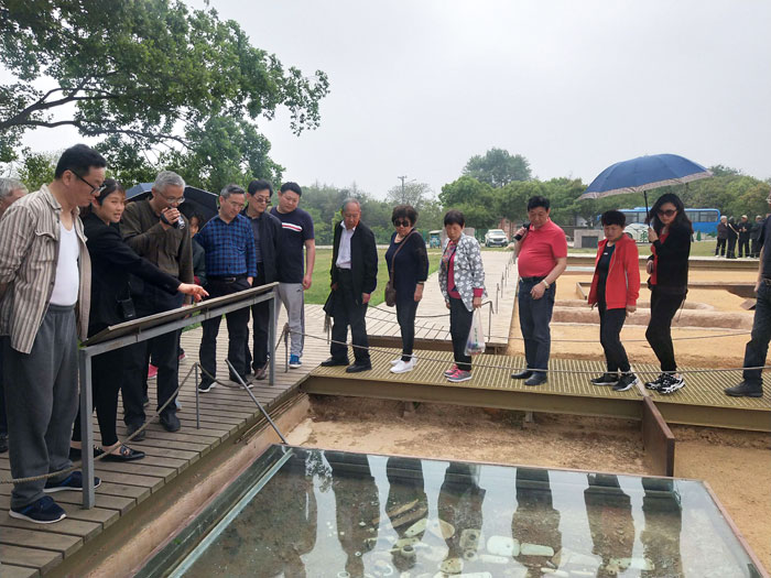 在凌家滩遗址,老师们观摩新石器时代晚期的祭坛、大型氏族墓地以及祭祀坑、红烧土和积石圈等重要遗迹,零距离走进玉龙、玉鹰、玉猪等珍贵文物的发掘现场,惊叹当年的建造工艺水平,自豪于璀璨多姿的中华文明。