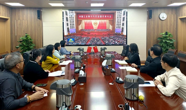 与会成员集中收看中国工会第十八次全国代表大会开幕式视频,认真学习蔡奇代表党中央在中国工会第十八次全国代表大会上的致辞、中华全国总工会主席王东明所作的《以习近平新时代中国特色社会主义思想为指导 组织动员亿万职工为强国建设民族复兴团结奋斗》主题报告等内容。