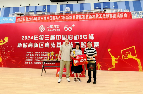 6月28日,由新站高新区社会发展局主办的第三届中国移动5G杯高教职工篮球赛在安徽职业技术学院落下帷幕,我校教职工篮球队奋勇拼搏,经过历时九天的多轮激烈角逐,荣获第四名的好成绩,取得历史性突破。