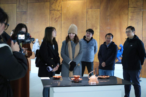 阿纳斯塔西娅一行还在继续教育(国际)学院院长陈明的陪同下参观了相关二级学院、实验剧场、音乐厅、融媒体中心、徽黄室安艺研习基地,观摩了舞蹈课和戏剧剧目课教学,观看了毕业大戏彩排、艺术歌曲演唱。在美术馆,她们参观了“薪技艺”国际工艺美术展,并和我校青年设计师进行热烈交流。