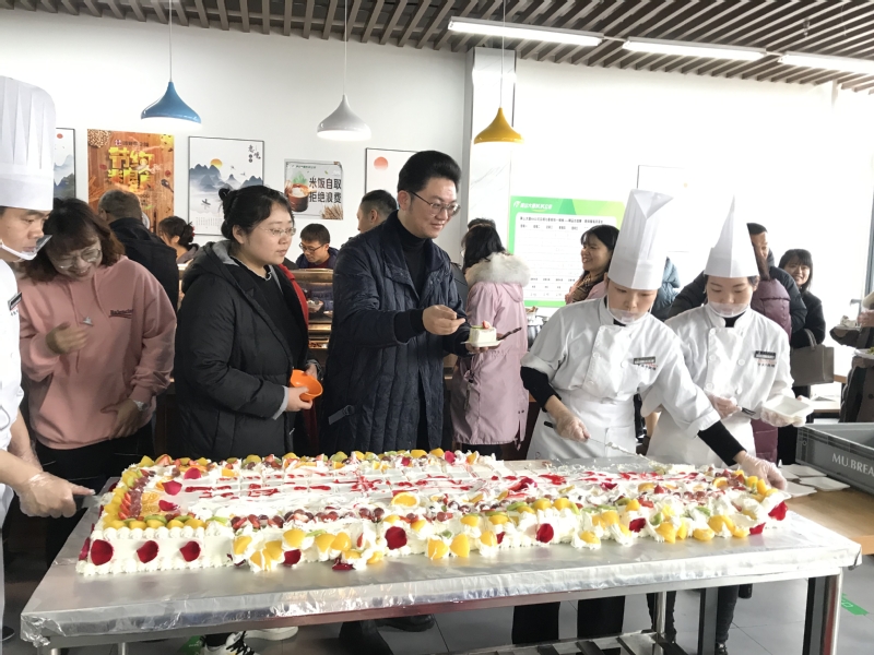坚守初心,砥砺前行 总务处组织食堂特制超长蛋糕为学院庆生