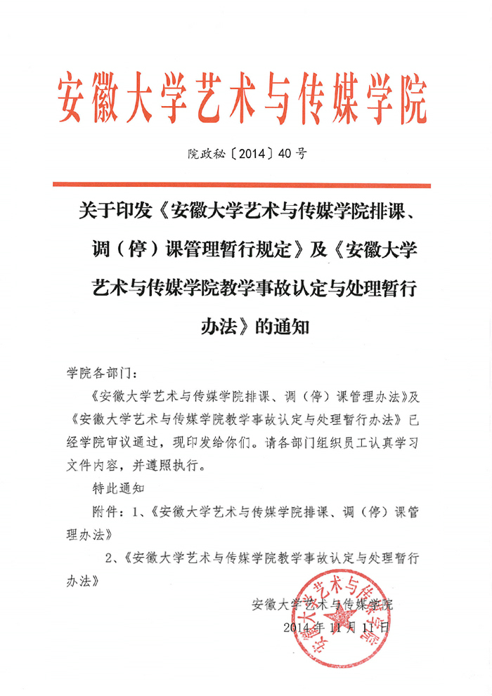 附件1:安徽大学艺术与传媒学院排课、调(停)课管理暂行规定.docx