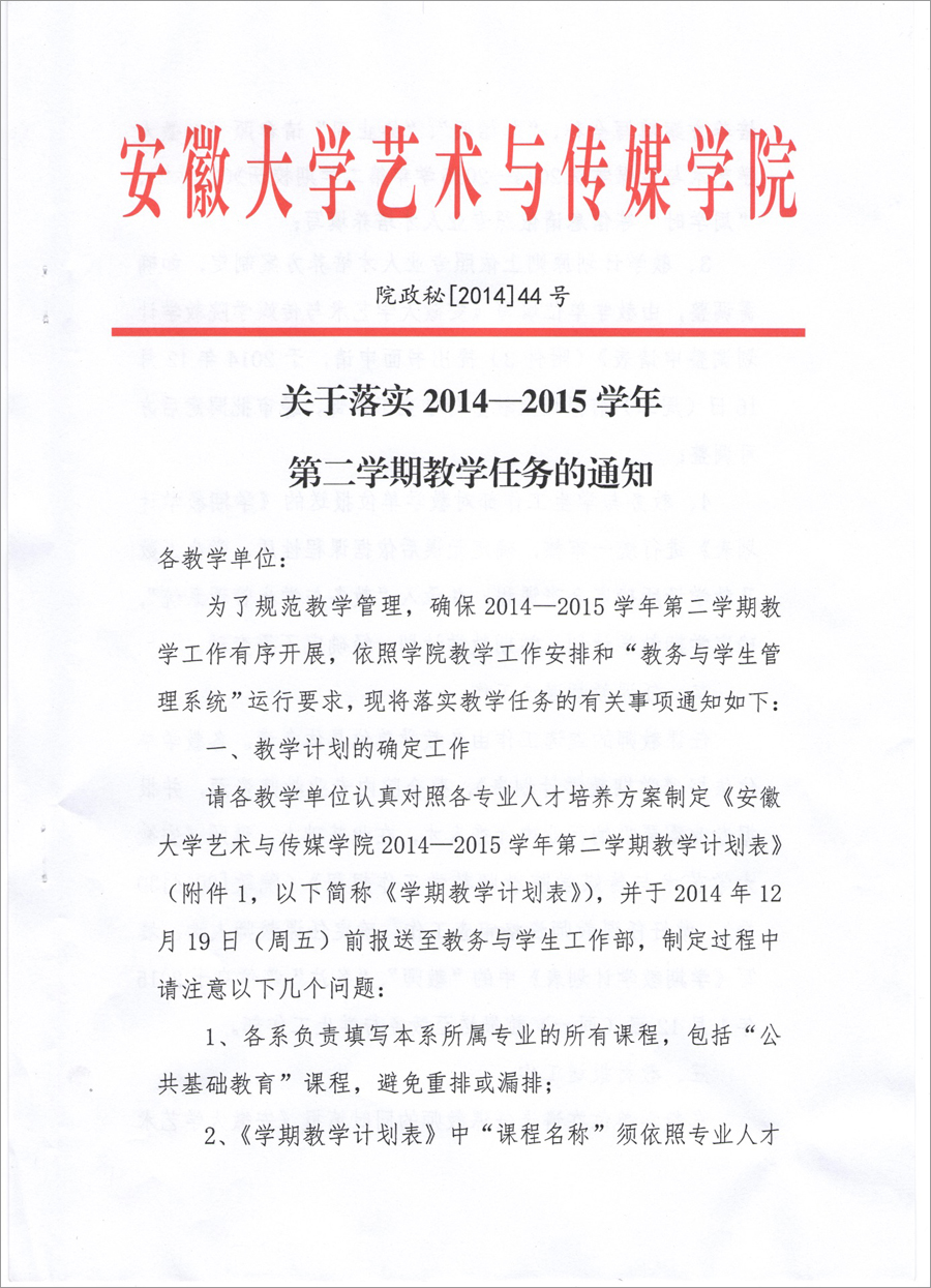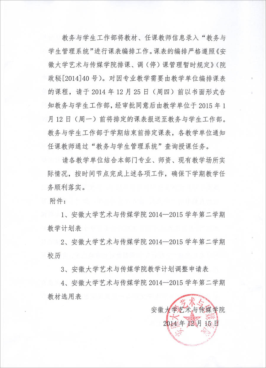 附件1:安徽大学艺术与传媒学院2014—2015学年第二学期教学计划表.xls
