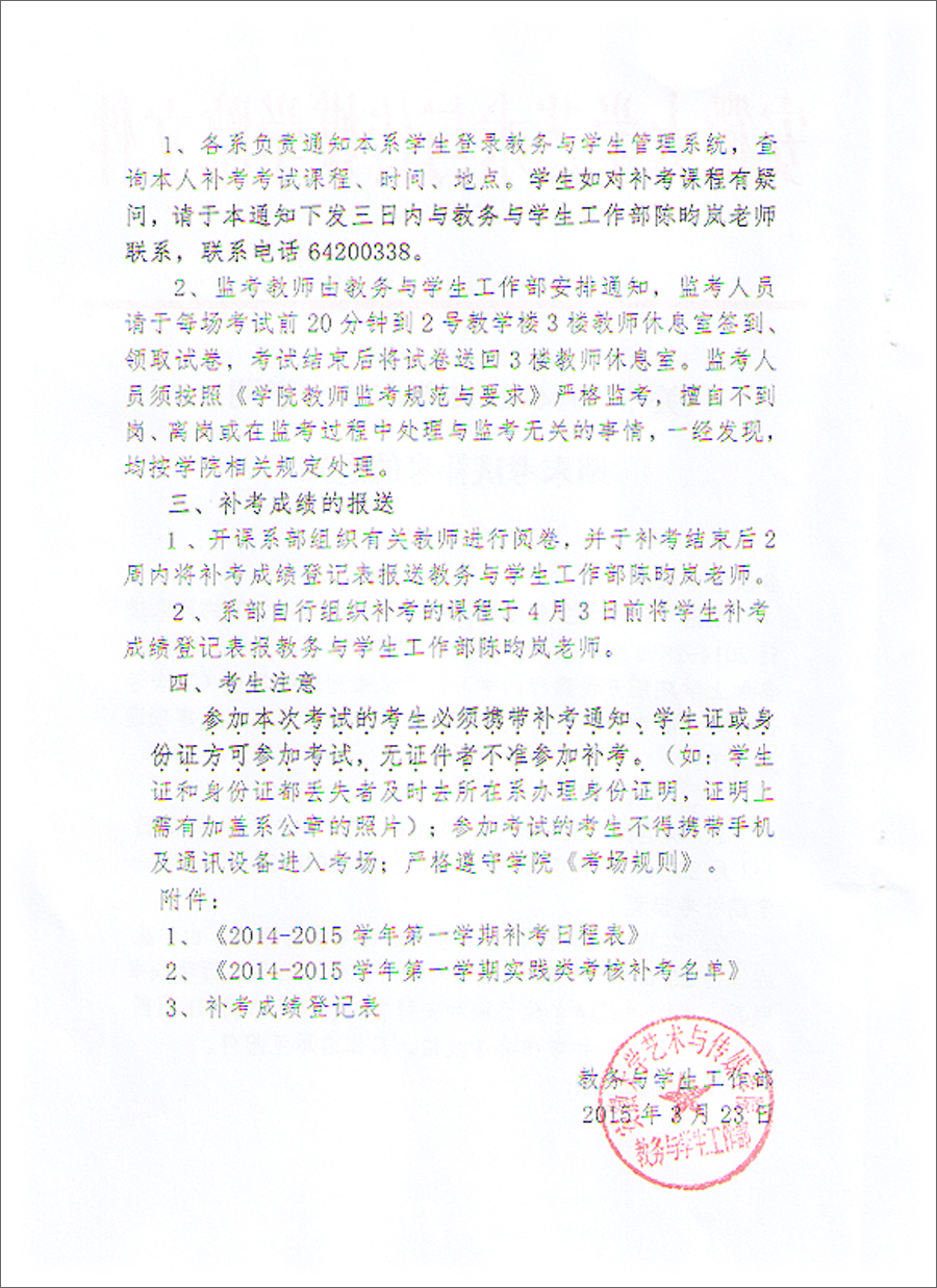 1、2014-2015学年第一学期期末补考日程表.xls