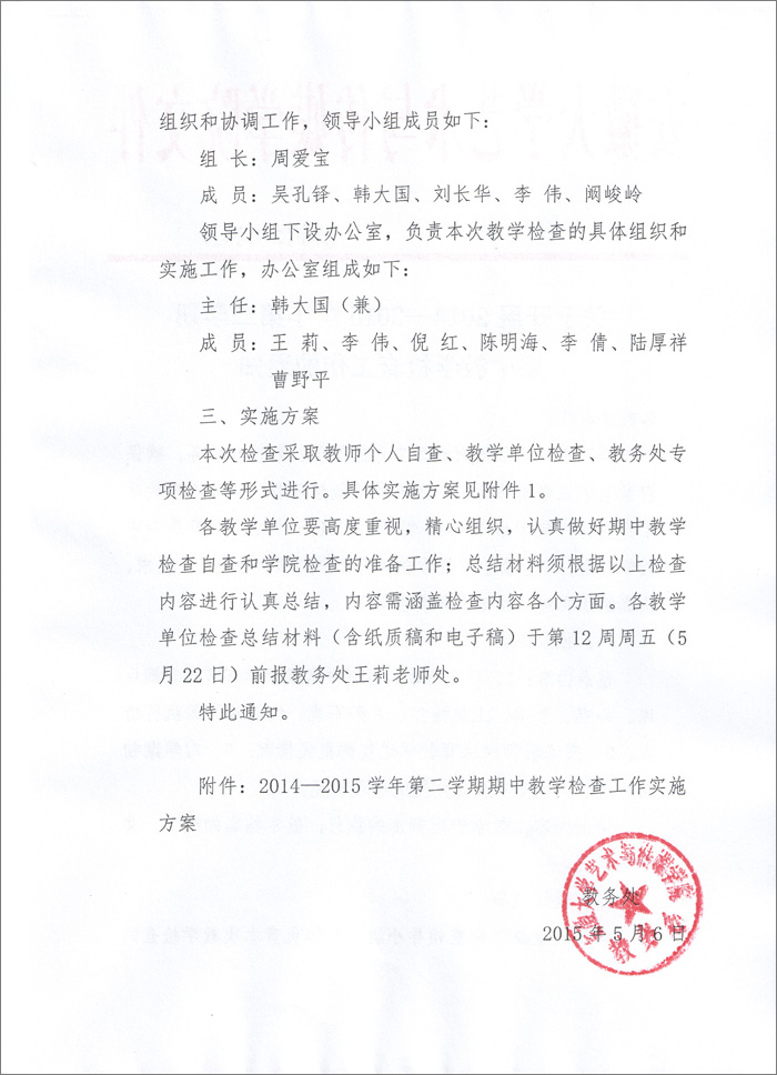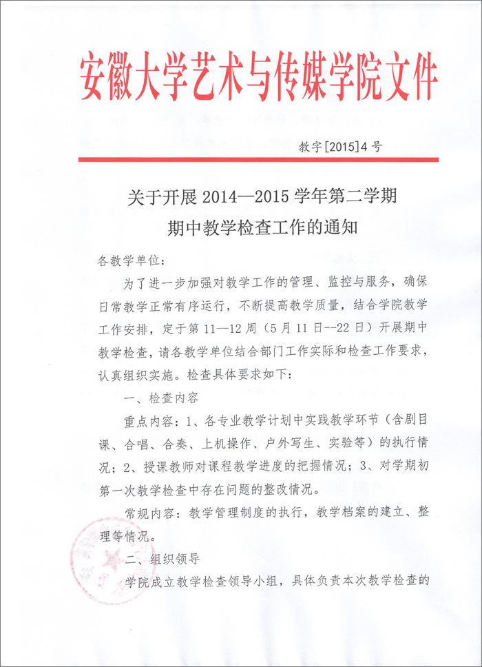关于开展2014-2015学年第二学期期中教学检查工作的通知