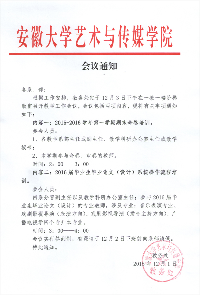 关于召开教学工作会议的通知